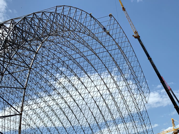 (2)网架加工前应对现场尺寸进行复测,确认无误后方可进行加工、安装;网架制作、运输、安装应遵守《空间网格结构技术规程》JGJ7-2010、《钢网架大冶螺栓球节点》JG/T 10-2009、《钢网架大冶螺栓球节点用高强度螺栓》 GB/T 16939-2016、《大冶钢结构大冶工程大冶施工规范》 GB50755-2012、《大冶钢结构大冶工程大冶施工质量验收标准》 GB50205-2020。